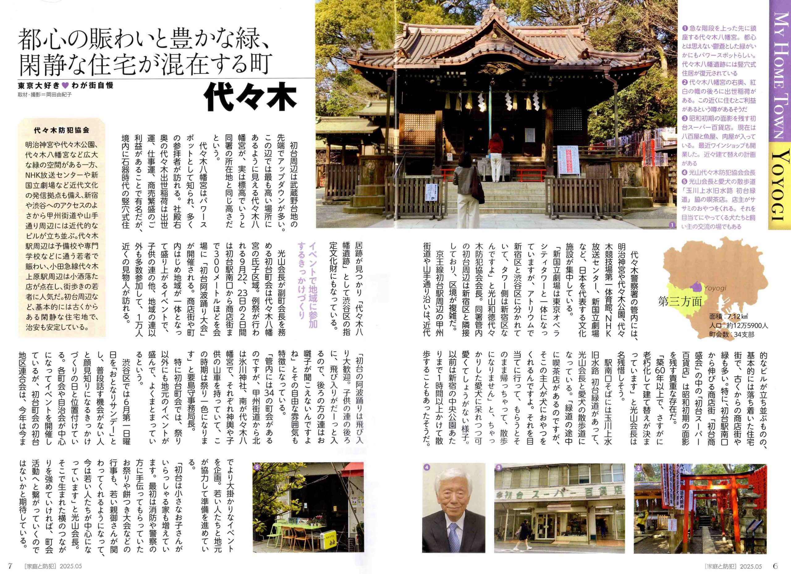 2025年6月1日 / 最終更新日時 : 2025年9月9日 代々木防犯協会 活動報告 『家庭と防犯』MY HOME TOWNに「代々木」が紹介されました(2025.5) 家庭と防犯5月号に、「代々木」(代々木防犯協会光山和徳会長)が紹介されました。 公益財団法人東京防犯協会連合会 発行 家庭と防犯5月号